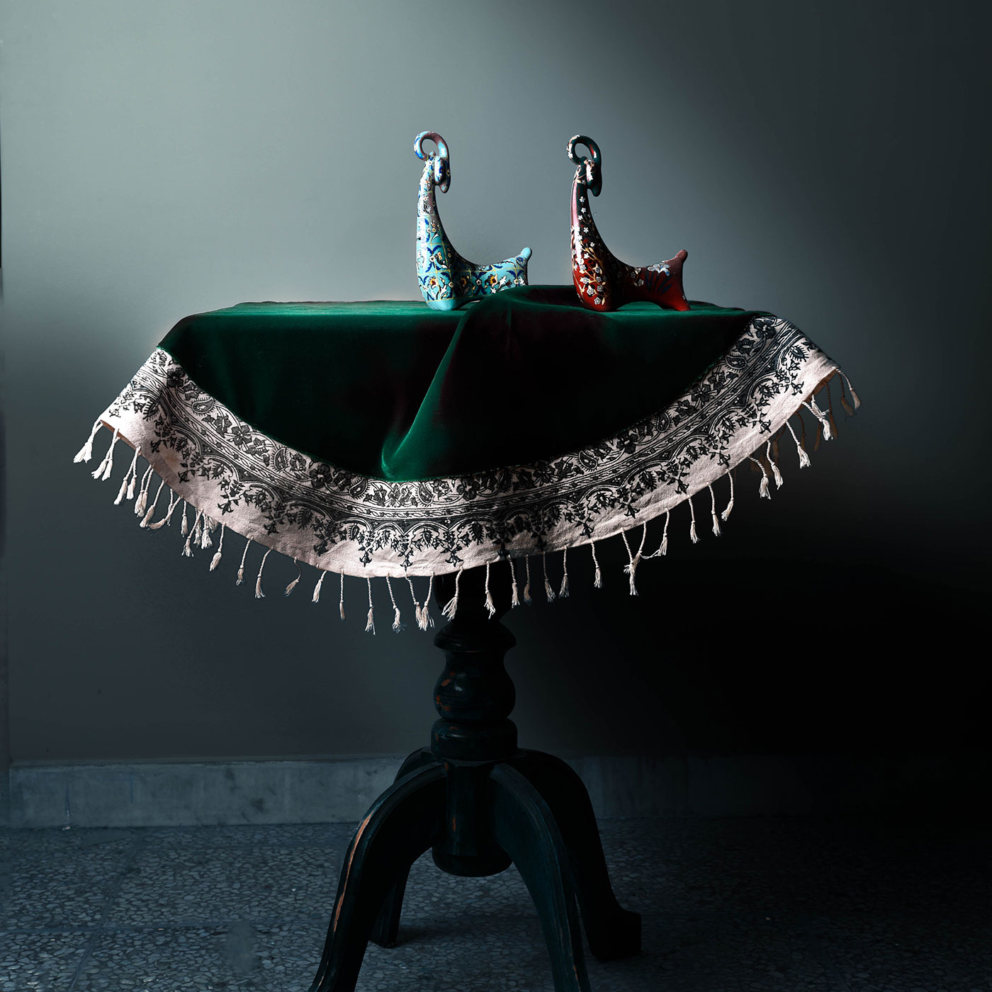 رومیزی تلفیقی مخملقلمکار طرح «گرد»